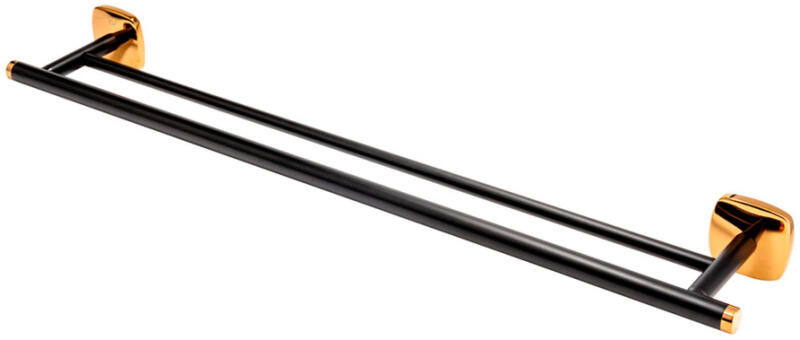 A törölközőtartó az elegáns Merida fürdőszobai kiegészítők kollekciójának része. A termékcsalád kifinomult dizájnjával, kifogástalanul sima felületeivel, pompás formáival és inspiráló színkombinációival hívja fel magára a figyelmet. A rózsaarany finoman csillogó színe matt feketével kombinálva rendkívüli fényjátékkal örvendeztet meg minket. Ez egy igazi fürdőszobai ékszer a 21. században. A kollekció a Meandro, Zaffiro, Ardesia és Seppia sorozat azonos színű kivitelű csaptelepeihez készült. - törölközőtartó - dupla - szélesség: 60 cm - mélység: 10,7 cm - szín: rózsaarany, fekete matt - garancia: 2 év