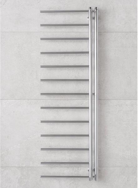 Az Apollo elegáns törölközőszárítója gondoskodik a kellemesen meleg törölközőkről és a fürdőszoba komfortos hőmérsékletéről. Okos kialakításának köszönhetően a törölközőket oldalról akaszthatja, vagy használhatja a függőleges csöveken található praktikus kampókat. Elérhető jobb oldali kivitelben is, hogy tökéletesen illeszkedjen fürdőszobájába. Víztérfogat: 3 l. Energiaszükséglet: 200 W. Hőteljesítmény: 219 W. Lehetőség elektromos fűtőpatron beépítésére a teljesen elektromos vagy kombinált üzemmódhoz. Alapváltozat: radiátor vízteres fűtési rendszerhez.